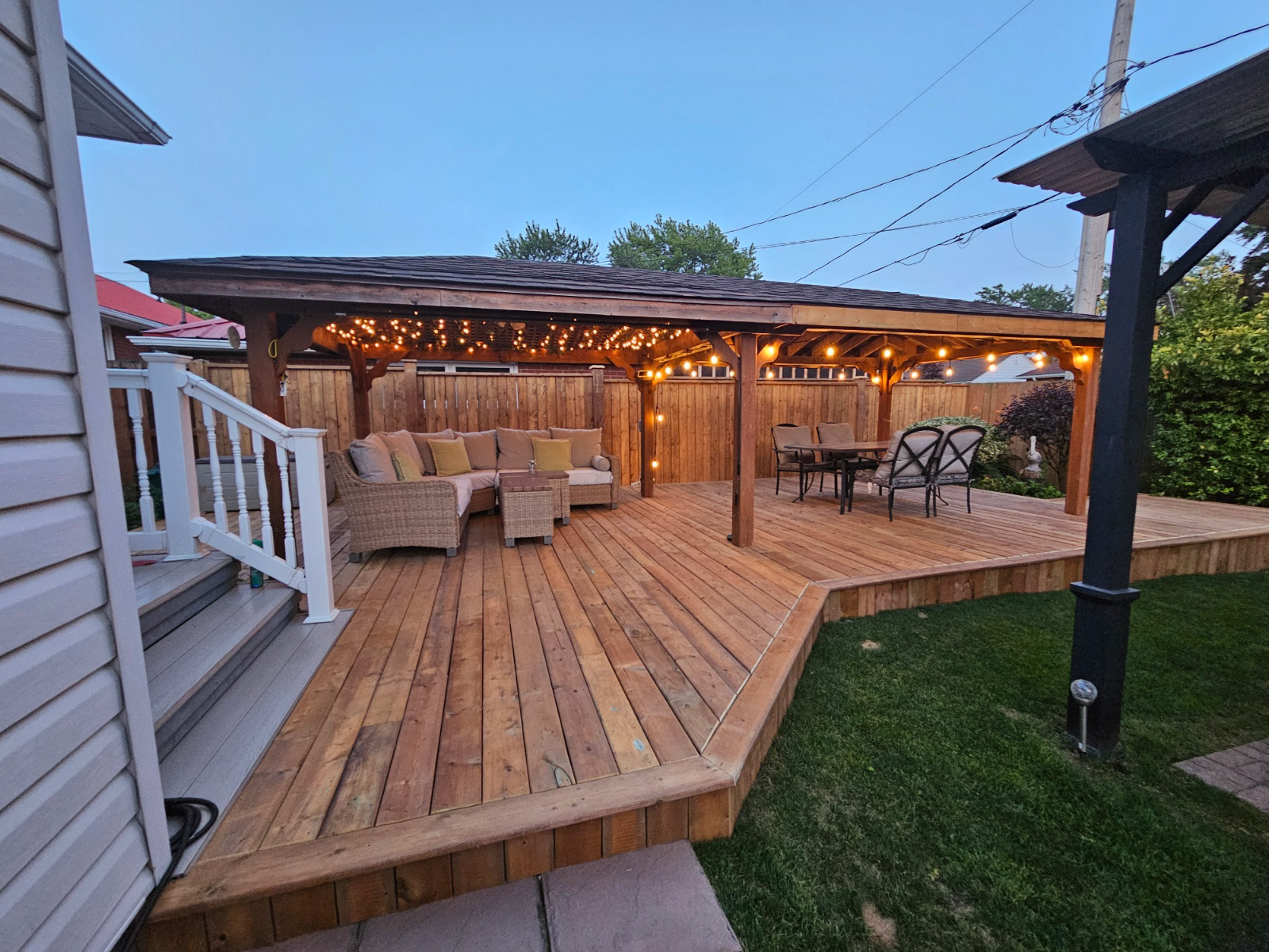 Accessory structures can be a nice touch to refresh an outdoor seating area. Give us a call if you're looking to hang lights and hangout!